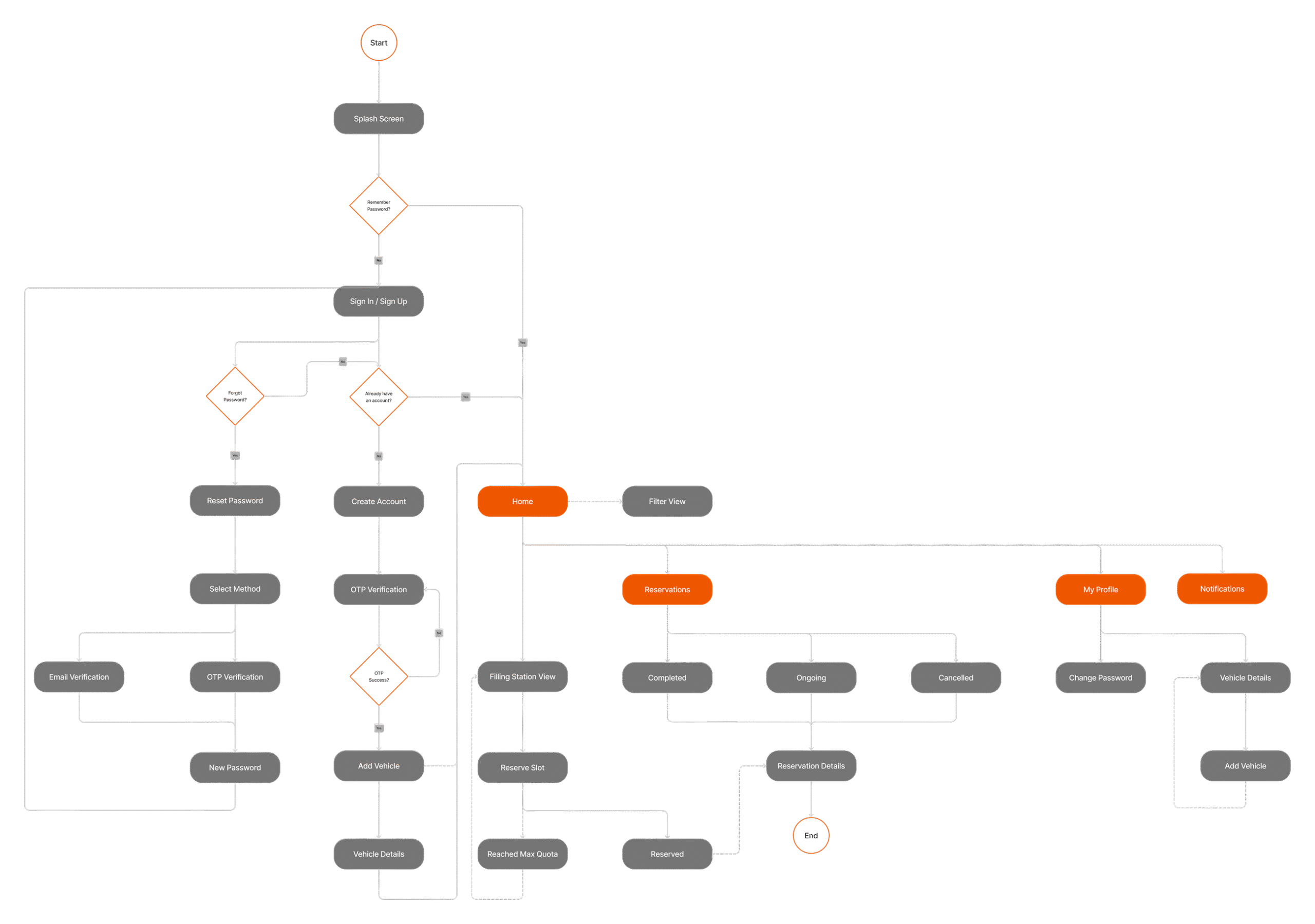 I created a detailed user flow to visually represent the path a user would take through the application in order to achieve their goals. This flow outlines each step, from initial interactions to completing tasks, ensuring that the user experience is intuitive and seamless. By mapping out the process, I was able to identify key touchpoints and potential obstacles, allowing me to refine the design for better usability and efficiency. The user flow serves as a blueprint for guiding users through the app in the most efficient and user-friendly way.