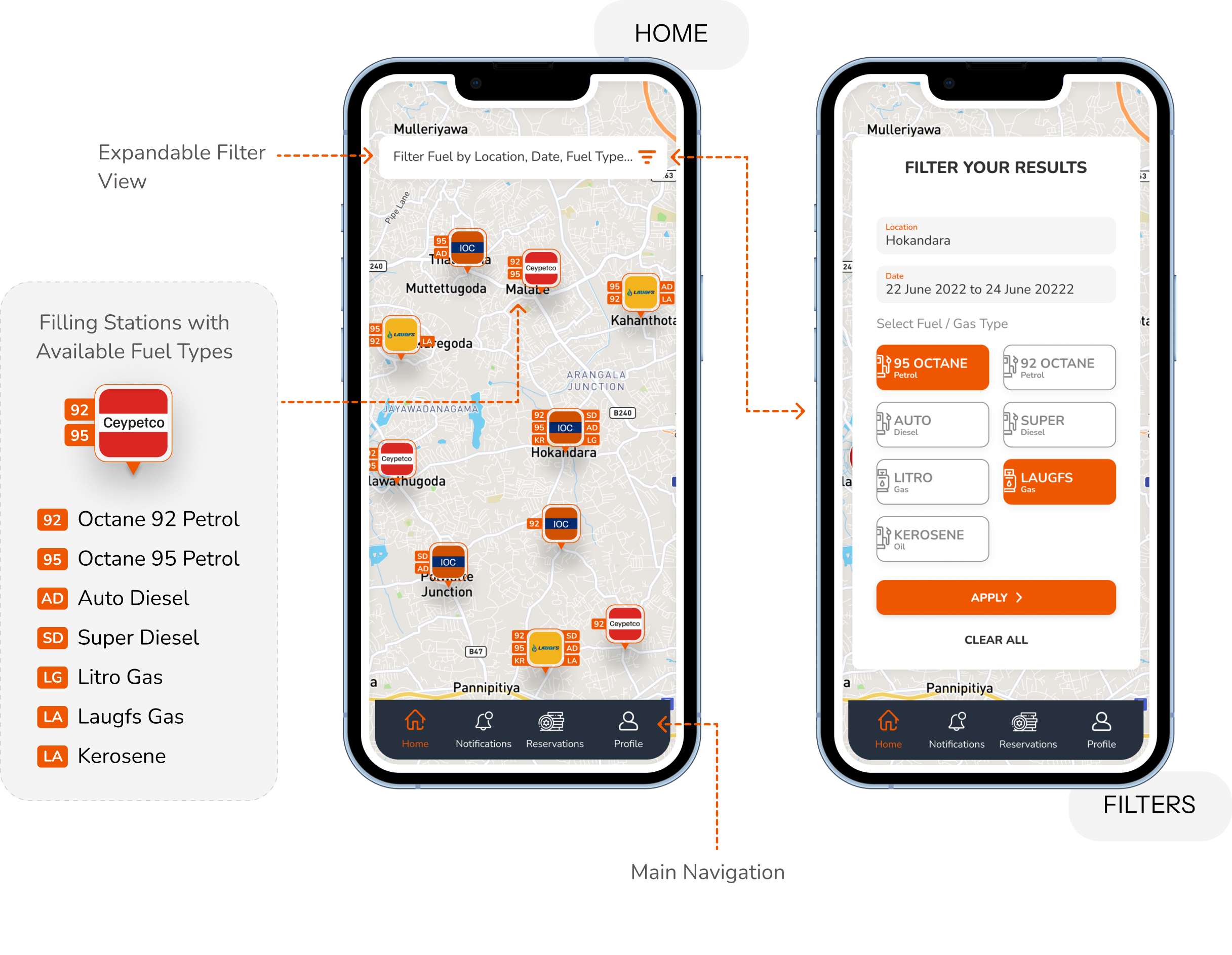 A mobile application will offer an intuitive map displaying filling stations with real-time fuel availability based on user-defined criteria. Users can conveniently reserve various fuel types for multiple vehicles and receive timely notifications when fuel arrives at the selected stations within the expected refueling window.